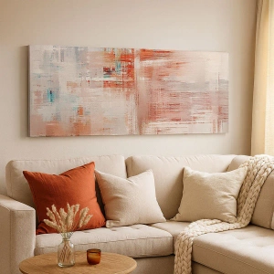 - Această elegantă imprimare pe pânză, de 70x50 cm, prezintă o compoziție abstractă în nuanțe de roșu și culori pastelate. Perfectă pentru interioarele moderne, aduce armonie și stil.