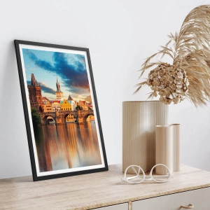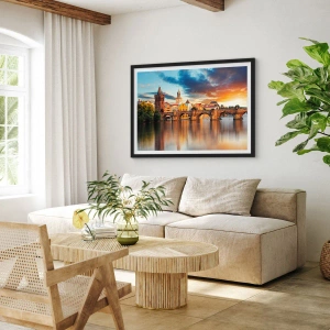 Poster în ramă neagră - Podul Carol din Praga la apus - 50x70cm - Frumoasă pentru veacuri - Decorațiune modernă pentru perete pentru living și dormitor ARTTOR