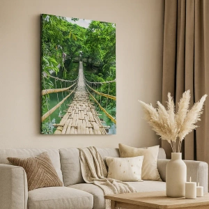 Tablou pe pânză - Pod de maimuțe peste verdeață - 45x80 cm