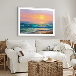 Poster în ramă albă - Cântecul turcoaz al valurilor - 70x100 cm