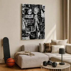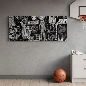 „Colaj de artă stradală alb-negru” este alegerea perfectă pentru iubitorii de artă modernă și decorațiuni dinamice. Completează perfect interioarele industriale, minimaliste sau eclectice, adăugând un caracter urban și originalitate. Pictura nu numai că decorează, ci și inspiră prin creativitatea și energia sa.