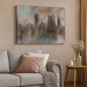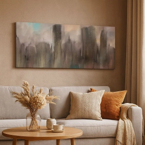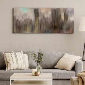 Tablou pe pânză - O compoziție de oțel, piatră și ceață - 45x80 cm