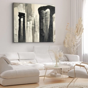 - Această imprimare pe pânză de 70x50 cm înfățișează coloane antice într-un decor monocromatic. Perfectă pentru interioare clasice sau moderne, aduce armonie și eleganță.
