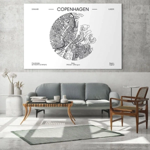 Tabloul „Anatomia Copenhaga” înfățișează capitala daneză într-o formă modernă, grafică. Elementul central al compoziției este o hartă stilizată a orașului, prezentată într-o reprezentare schematică a străzilor și cartierelor. Paleta de culori monocromatice combinată cu desenul precis creează o atmosferă minimalistă care se potrivește perfect interioarelor contemporane. Designul, menținut în simplitate și acuratețe, constituie simultan o reprezentare grafică a orașului, devenind nu doar o decorațiune, ci și o înregistrare simbolică a spațiului său. Copenhaga, ca oraș cunoscut pentru atenția sa la estetică și planificare urbană, corespunde perfect ideii de design minimalist.