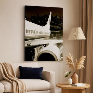 „Zboară în noapte” este o compoziție extraordinară care înfățișează un avion care se înalță deasupra unui oraș nocturn agitat. Autostrăzile iluminate vizibile mai jos creează un labirint de dâre luminoase care adaugă dinamism și modernitate întregului peisaj. Luminile orașului se reflectă în structurile arhitecturale, subliniind atmosfera unică a peisajului urban.