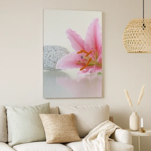 Tablou de perete - Studiu în roz, gri și alb - Crin roz cu pietre pe fundal deschis