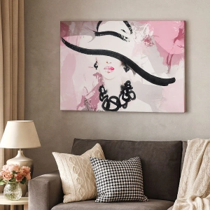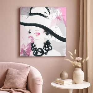 Tablou pe pânză - Studiu unei dame în negru și roz - 30x30 cm