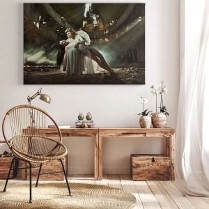 - Pictura înfățișează două figuri într-un decor mistic, format din ruine abandonate. Simbolismul angelic și jocul de lumini și umbre creează o atmosferă misterioasă și dramatică. Perfectă pentru interioare cu o notă de gotic și misticism.