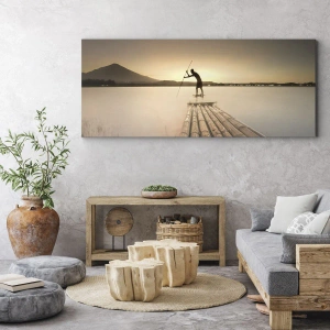 Tablou pe pânză Canvas - Bărbat pe o plută la apus - 70x50cm - Înainte de odihnă - Decorațiune modernă pentru perete pentru living și dormitor ARTTOR