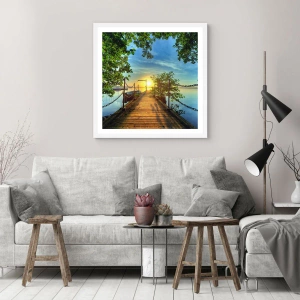 Poster în ramă albă - Apusul la malul apei - 50x40 cm