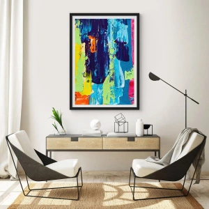 - Acest poster prezintă tușe abstracte în culori vibrante precum albastru, galben și roșu. Perfect pentru interioare moderne, adaugă energie și definiție. Vine cu o ramă neagră elegantă.