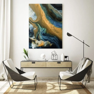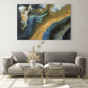- abstracție fascinantă, cu nuanțe dominante de auriu și albastru, combinând tranziții cromatice structurale cu o profunzime elegantă. O decorațiune perfectă pentru interioare moderne și minimaliste.