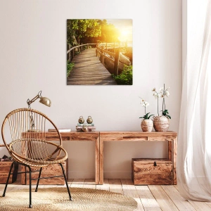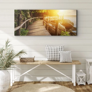 - O imprimare pe pânză cu un dig de lemn în mijlocul vegetației, care duce spre mare în razele soarelui. Perfectă pentru interioarele care evocă armonie și liniște.