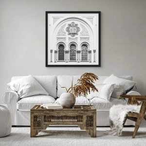 Poster în ramă neagră - Detaliu arhitectural în stil neogotic, alb-negru - 50x70cm - La granița dintre culturi - Decorațiune modernă pentru perete pentru living și dormitor ARTTOR