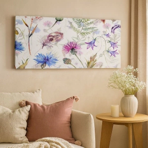 Tablou pe pânză Canvas - Acuarelă de flori și ierburi pe fundal alb în stil herbar - 70x50cm - Ierbarul polonez - Decorațiune modernă pentru perete pentru living și dormitor ARTTOR