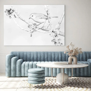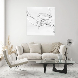 - O delicată compoziție alb-negru care prezintă o pasăre cocoțată pe o creangă într-un peisaj de iarnă. Natura minimalistă a picturii aduce un sentiment de calm și eleganță subtilă interiorului.