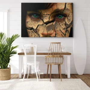 Tablou pe pânză Canvas - Fața unei femei cu ochi verzi acoperită de o structură de pământ crăpat - 70x50cm - Încântare și groază în același timp - Decorațiune modernă pentru perete pentru living și dormitor ARTTOR
