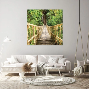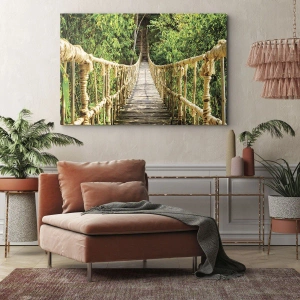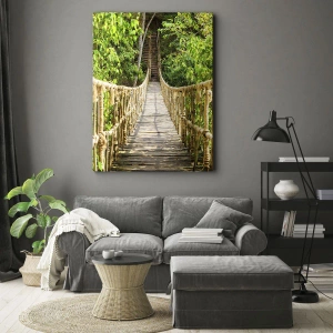 O pădure tropicală, plină de vegetație intens verde, creează un fundal pentru pod, care pare a fi o invitație la descoperirea necunoscutului. Natura luxuriantă, frânghiile podului și scândurile de lemn adaugă autenticitate și un caracter aventuros scenei. Aceasta este o pictură care atrage atenția și inspiră călătoriile.