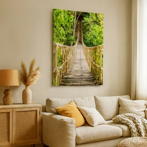- Această imprimare pe pânză înfățișează un pod suspendat într-o pădure tropicală, înconjurat de verdeață luxuriantă. Un plus perfect pentru interioarele inspirate de natură și exotic, aduce armonie și liniște.