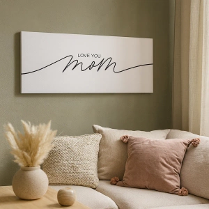 - O imprimare minimalistă pe pânză de 70x50 cm, cu mesajul „Te iubesc, mama” pe un fundal alb. Un cadou perfect sau o piesă elegantă de decor pentru casă.