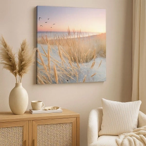 Tablou pe pânză Canvas - Plajă la apus cu ierburi înalte - 70x50cm - Cântec de leagăn baltic - Decorațiune modernă pentru perete pentru living și dormitor ARTTOR