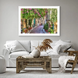 Poster în ramă albă - Alee înfloritoare - 100x70 cm