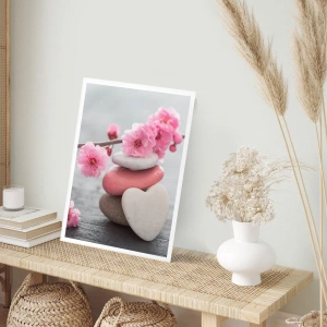 • inimă, floare, pietre, Botanica, Flori, Natura, Pentru birou, Pentru birou, Pentru sufragerie, Pentru baie, Pentru hol, Pentru living, Pentru dormitor, Roz, gri, Vertical
