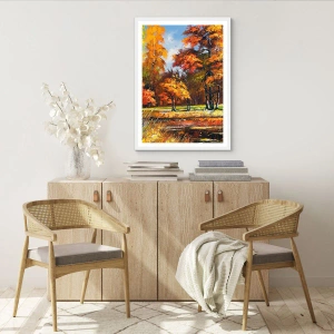 Poster în ramă albă - Peisaj în aur și bronz - 40x40 cm