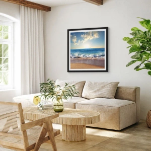 Poster în ramă neagră - O plajă cu valuri și un orizont însorit - 50x70cm - Mișcare și liniște în același timp - Decorațiune modernă pentru perete pentru living și dormitor ARTTOR