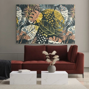 Tablou pe sticlă - Fantezie cu frunze - 100x40 cm