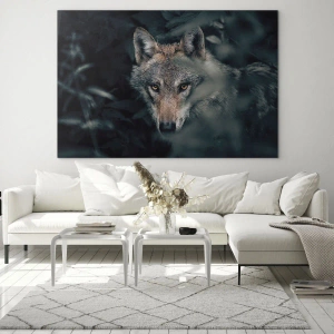 Tabloul pe sticlă „Vânător” înfățișează un lup maiestuos în habitatul său natural - ascuns printre frunze, gata de acțiune, dar rămânând complet alert. Această fotografie extraordinară prezintă privirea intensă a prădătorului sălbatic, care străpunge întunericul pădurii, conferind întregii scene un caracter hipnotizant. Imaginea atrage atenția prin autenticitatea și frumusețea sa naturală.