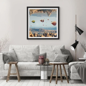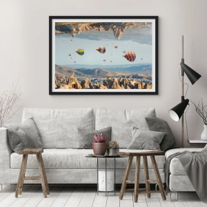 - Acest poster înfățișează baloane cu aer cald plutind peste un teren stâncos. Perfect pentru interioare moderne. Include o ramă neagră. Dimensiune: 50x70 cm.
