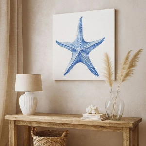 Creat pe pânză de înaltă calitate, tabloul garantează durabilitate și intensitate a culorilor. Contrastul dintre steaua de mare albastră și fundalul alb accentuează claritatea compoziției, introducând în același timp pace și subtilitate. Simplitatea motivului face din acest tablou un element decorativ versatil.