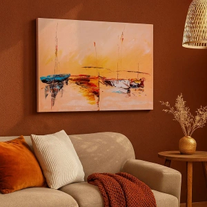 Tablou pe pânză Canvas - Bărci colorate pe ape calme la apus - 70x50cm - O seară în golf - Decorațiune modernă pentru perete pentru living și dormitor ARTTOR