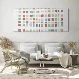 Tabloul pe sticlă este realizat din sticlă de 4 mm grosime. Marginile sticlei au o tăietură trapezoidală mată. Tabloul este sigur pentru utilizare și gata de agățat - are agățătoare metalice fixate pe spatele tabloului și distanțiere din spumă pentru a regla distanța uniformă a tabloului față de perete.
