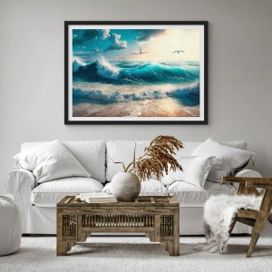 Poster în ramă neagră - Valuri turcoaz care se izbesc de țărm - 50x70cm - Sunetul valurilor doar pentru tine - Decorațiune modernă pentru perete pentru living și dormitor ARTTOR