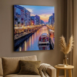 • Această imprimare pe pânză înfățișează o vedere de seară a canalului, iluminat de clădiri colorate. Este completarea perfectă pentru orice interior elegant și stilat.