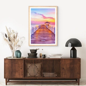 Poster în ramă de stejar deschis - Tăcerea serii în liliac-auriu - 50x50 cm