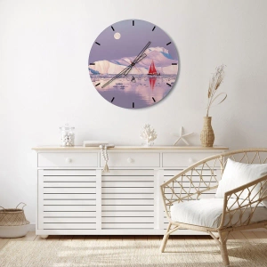 Ceas de perete - Căldura pânzei, răcoarea gheții - O corabie cu pânze cu aisberguri în lumina lunii în fundal