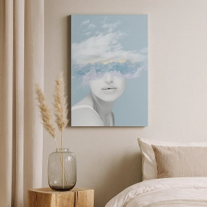 Tablou pe pânză Canvas - Portretul unei femei cu fața ascunsă în spatele norilor și valurilor - 70x50cm - Cu capul în nori - Decorațiune modernă pentru perete pentru living și dormitor ARTTOR