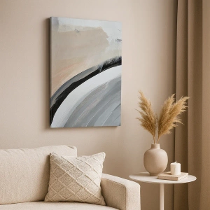- Acest tablou înfățișează un arc abstract în nuanțe de negru, gri și bej. Un decor minimalist care aduce eleganță și armonie interioarelor.
