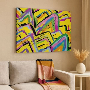 - O compoziție abstractă dinamică, plină de culori strălucitoare și forme expresive. Această pictură este perfectă pentru interioare moderne, infuzând energie și un stil unic. O decorațiune perfectă pentru un living sau o cameră de adolescent.