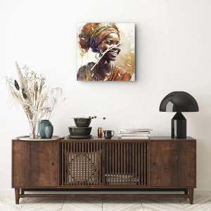 Ceas de perete - Ceas pe sticlă - Regina africană - 40x40 cm