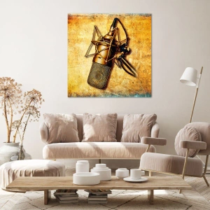 Nuanțele calde, aurii și textura artistică a fundalului conferă picturii un caracter unic. Microfonul simbolizează arta sunetului, creând o atmosferă inspiratoare atât în sufragerie, cât și în spațiile de studio profesionale. Perfect pentru muzicieni, vocaliști și pasionații de audio.