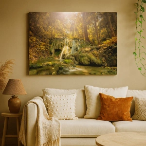 Tablou pe pânză - Cascada de pădure în verde - 40x40 cm
