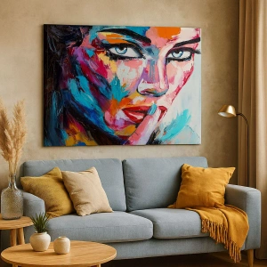 - Acest tablou înfățișează un portret colorat al unei femei într-un stil abstract. O compoziție dinamică și expresivă, perfectă pentru interioarele moderne.