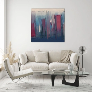 Tablou pe sticlă - Compoziție verticală în albastru și roșu - 30x30 cm