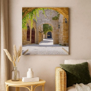 Tablou pe pânză Canvas - Arcade de piatră și străzi pietruite în stil medieval - 70x50cm - Procesiunea e pe cale să apară - Decorațiune modernă pentru perete pentru living și dormitor ARTTOR