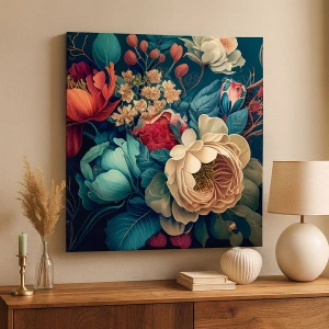 Pictura a fost creată pe pânză de înaltă calitate, asigurând durabilitate și profunzime a culorilor. Detaliile florale expresive, nuanțele contrastante și accentele subtile conferă picturii un caracter unic care atrage atenția și îi subliniază expresia artistică. Aceasta este o lucrare care aduce eleganță și armonie interioarelor.