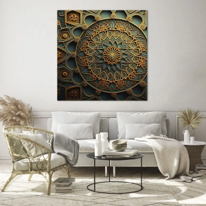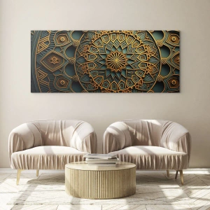 - Un ornament bogat decorat în stil mozaic arab în nuanțe de auriu și turcoaz, această pictură aduce eleganță și o atmosferă orientală interiorului.